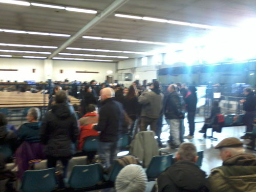 Foto dall’udienza per il processo ai notav nellaula bunker del carcere delle Vallette