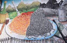 Anche la grande forchetta affondata nella delizia dell’amatriciana si trasforma in ruspa che addenta la carne viva della montagna. E il ramo nodoso che può essere sostegno al passo per i sentieri del bosco o alimento al calore buono del fuoco oppure difesa contro l’aggressione del buio che avanza, degenera nel manganello aggressore.