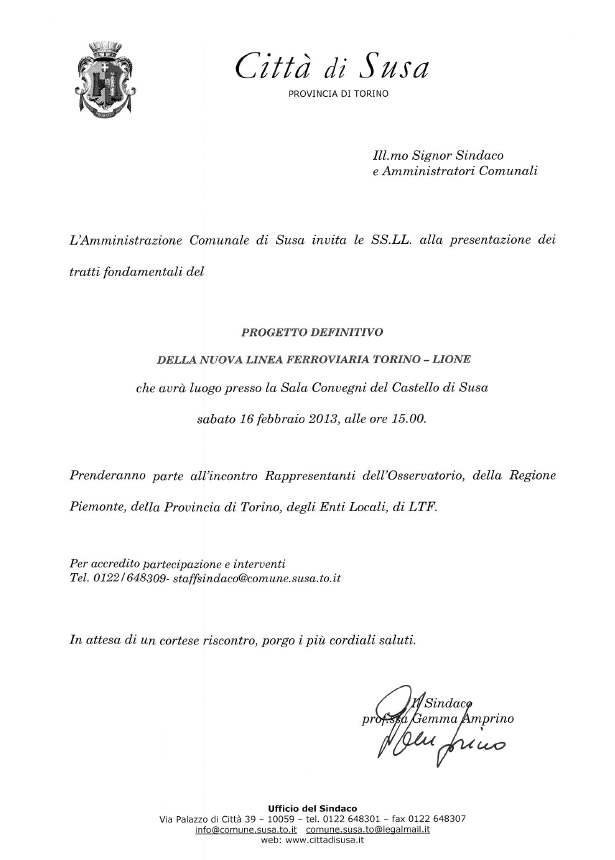 La popolazione di cui tanto blatera non è invitata, nè da lui, nè dal sindaco di Susa che non prova nemmeno un pò di vergogna nel calpestare la democrazia .