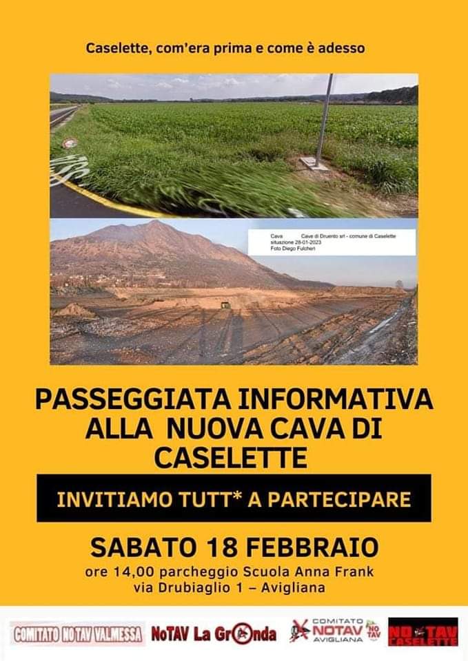 Ancora una volta un cantiere strettamente legato alla Torino Lione impatta fortemente con il territorio e con chi lo abita, come già successo a Chiomonte e a San Didero, e come potrà succedere a Buttigliera, Bussoleno, Susa, Giaglione e Salbertrand. Non possiamo stare a guardare mentre la nostra Valle viene distrutta.
