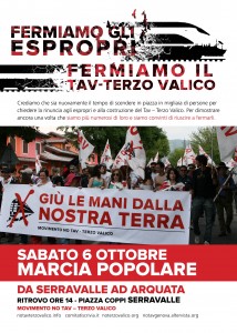 Per questa ragione crediamo che sia nuovamente il tempo di scendere in piazza in migliaia di persone per chiedere la rinuncia agli espropri e alla costruzione del Tav – Terzo Valico. Per dimostrare ancora una volta che siamo più numerosi di loro e siamo convinti di riuscire a fermarli.