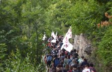 Dopo l’assemblea siamo partiti in corteo verso il presidio, trovando ad un certo punto il sentiero sbarrato da un jersey. Grazie ad un’ordinanza della vergogna, infatti, emanata in fretta e furia nella serata di ieri dal prefetto (per esigenze di ordine pubblico), la Questura prova ad impedire i rifornimenti di acqua e cibo ai No Tav assediati da quasi 24 ore.