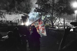 Contemporaneamente sono stati accesi diversi fuochi in prossimità delle barriere posizionate dalla polizia, che immediatamente ha risposto con fitti lanci di lacrimogeni e getti d’acqua nei confronti dei manifestanti causando il ferimento di alcuni di loro. Immediata è stata risposta degli attivisti NoTav che ,non facendosi intimorire, hanno risposto con lanci di fuochi d’artificio, cori e il coraggio di chi lotta contro un’opera inutile che devasta i territori e li militarizza.