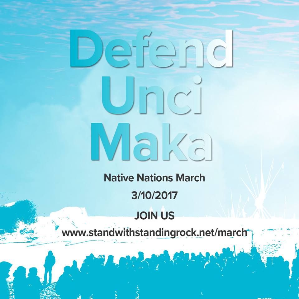 Il movimento indiano rilancia così l’appello ad una solidarietà internazionale. E’ stata lanciata per la giornata del 10 marzo una marcia denominata “Defend Unci Maka” (Difendi NonnaTerra), con l’intenzione di portare centinaia di migliaia di persone a Washington per marciare insieme i capi indiani: «Chiediamo che aumenti la solidarietà con i popoli indigeni di tutto il mondo i cui diritti proteggono Unci Maka (Nonna Terra) per tutte le future generazioni».