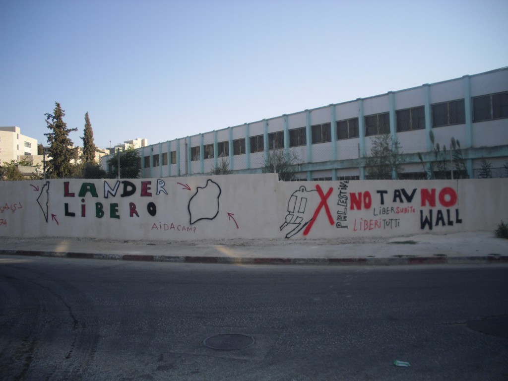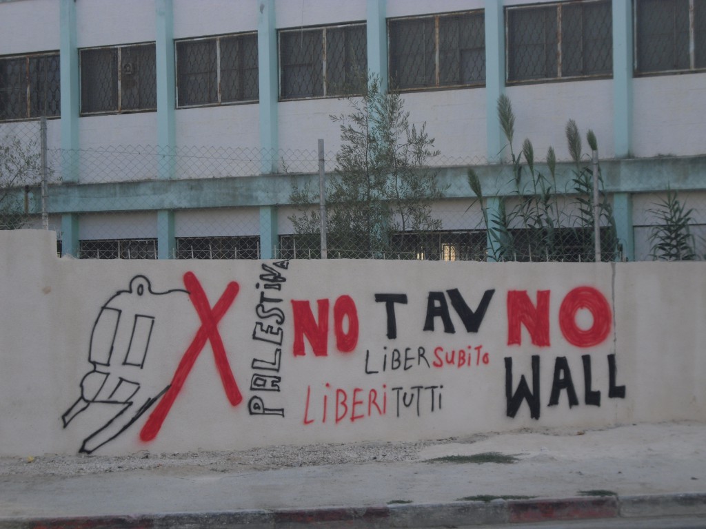 Una scritta, anche se simbolica, ci arriva da chi con tenacia resiste da più di 60 anni all’occupazione militare e al colonialismo dello Stato israeliano con cui l’Italia, sempre di più, stringe legami politici, economici e quindi militari.