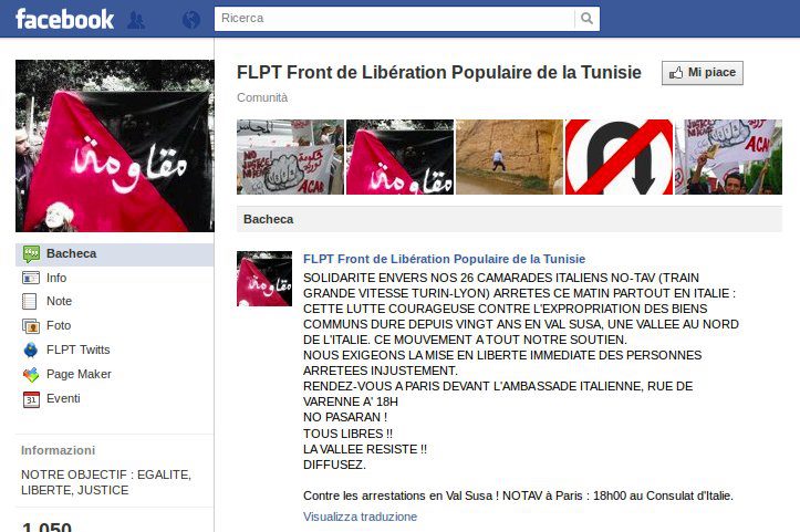 Solidarietà anche dal Fronte di Liberazione Popolare della Tunisia