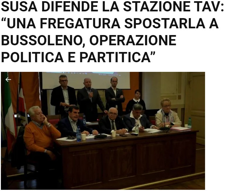 Prosegue lunedì 16 ottobre a Susa con una conferenza stampa in comune il ridicolo siparietto tra politicanti locali. Senza metterci la faccia gli schieramenti partitici, centro destra e centro sinistra, spingono i loro figuranti locali in una saga che sembra non avere fine. Sulle testate di informazione locale prende così piede il dibattito su una possibile stazione ad alta velocità in val di Susa come già citato nei giorni scorsi nel seguente approfondimento grande confusione nel cielo sitav due autoporti e nessuna stazione