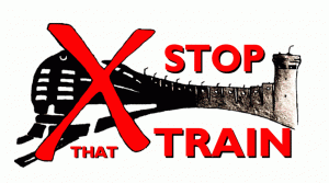 Chiomonte, 3 luglio 2011, ore 10.00. La lunga stretta strada dell’abitato fra le vecchie case di pietra è strapiena e dalla stazione si aggiunge con ogni treno in arrivo un’altra piena di gente. Mentre nel villaggio ci si trattiene ancora in lunghe file per panini, formaggio montano e caffè, la testa del corteo dei dimostranti è già in marcia un bel po’ avanti giù nella valle. Dappertutto sventolano bandiere bianche con su un treno crociato in rosso e la scritta No TAV oppure Stop that Train.