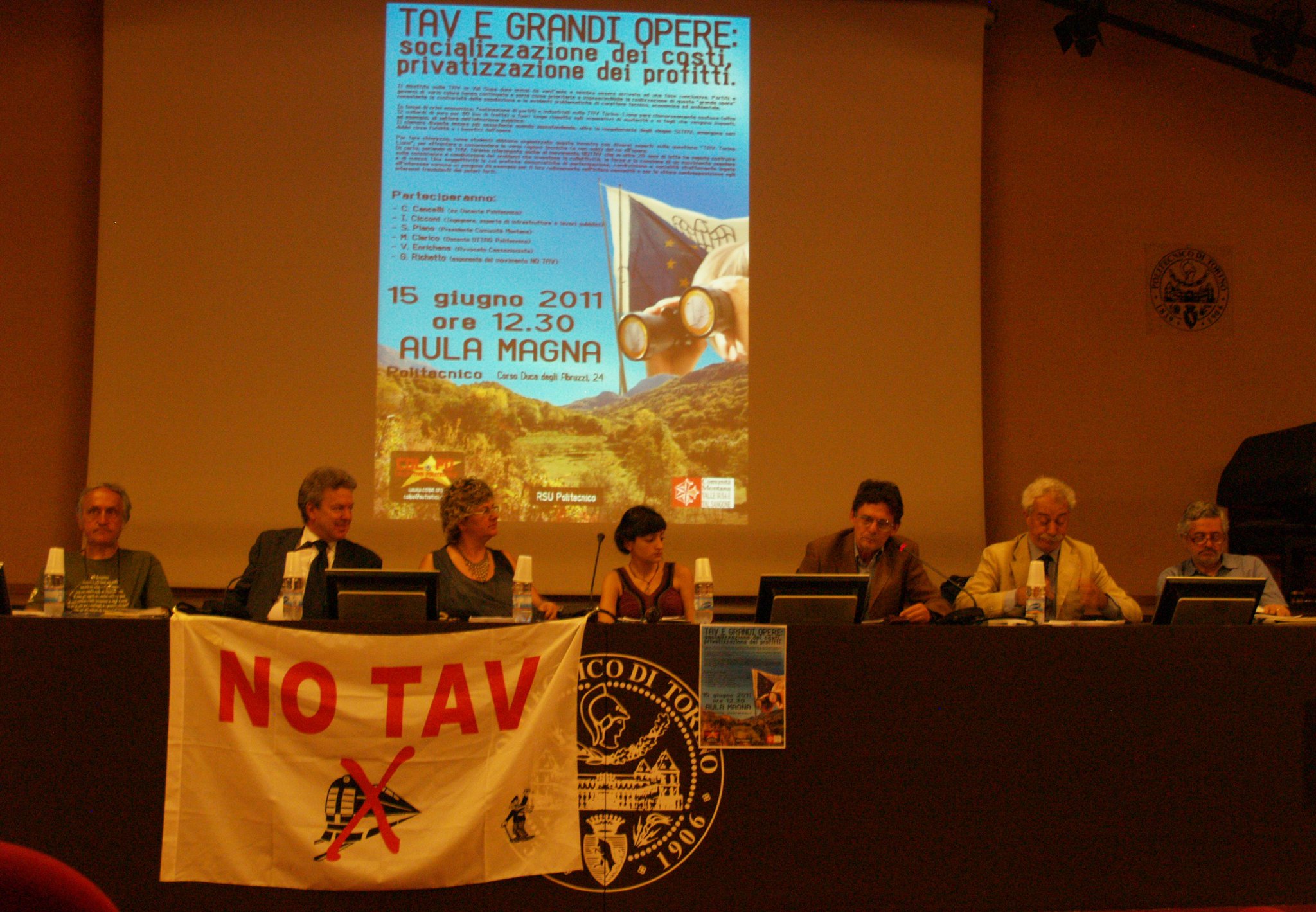 Iniziativa NoTAV partecipatissima ieri nell’Aula Magna del Politecnico. Oltre 300 fra studenti e lavoratori del Politecnico e tanti cittadini interessati hanno preso parte all’incontro “TAV E GRANDI OPERE: socializzazione dei costi, privatizzazione dei profitti” organizzato dal Col.Po (Collettivo Politecnico) e le RSU di ateneo.
