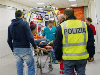 Giù, vicino al cantiere, la situazione non è migliore. Un gruppo di ragazzi incappucciati prova a tagliare le reti. Qualcuno lancia una bomba carta. La polizia risponde con gli idranti. Poi ancora lacrimogeni. Cadono dal viadotto dell’autostrada, filano dallo schieramento a guardia della recinzione. Ed è in quel parapiglia di urla, maledizioni e paura, che incrociamo Yuri, 16 anni, di Venaus. Lo sorreggono due amiche. Ha l’occhio sinistro tumefatto, vomita e sta per svenire. Un ragazzo, vicino a lui, grida: «Gli hanno sparato un lacrimogeno in faccia, aiutateci, abbiamo bisogno di un’autoambulanza». Arriva un altro ferito. Si chiama Ruggero Martorana, 19 anni, scappando si è spaccato la caviglia. Urla, le ossa del piede formano una specie di zeta. Lo stendono, lo soccorrono. Mentre contano altri quattro feriti più lievi.