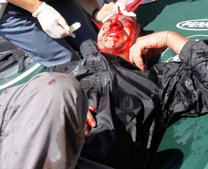 Poliziotti che tirano pietre dall’alto dell’autostrada…