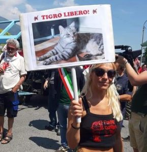 Grazie a questa vicenda, Tigro ha avuto il suo momento di gloria. Scrivo di ritorno dalla marcia da Bussoleno a San Didero di sabato 12 giugno con cui il movimento No Tav ha manifestato la sua opposizione all’autoporto che si vorrebbe costruire a integrazione della linea ferroviaria Torino-Lione. Una manifestazione imponente, vivace, piena di vita e di determinazione, allegra a dispetto di tutto. Un fiume di 15.000 persone (persino la questura ha ammesso che erano più di 6.000…), soprattutto giovani, che, da tempo, stanno prendendo il testimone dalla vecchia guardia garantendo che la protesta non si fermerà e, alla fine, avrà ragione di calcoli politici e interessi (https://volerelaluna.it/tav/2020/07/29/il-movimento-no-tav-e-giovane/). Ebbene, tra i molti cartelli, arrabbiati o ironici, c’erano anche quelli con la scritta «Tigro libero!». Appunto: «Una risata vi seppellirà».