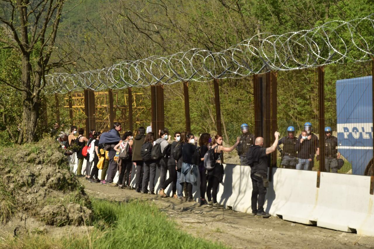 I/le No Tav hanno percorso i sentieri adiacenti ai campi fino ad arrivare alle recinzioni che circondano il nuovo cantiere di San Didero.