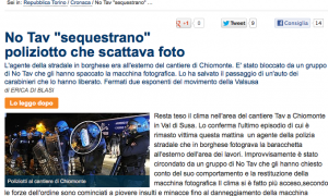 Finalmente alle 21 e 10 Andrea e Claudio sono stati liberati dopo 11 ore passate in stato di fermo. Ho appena potuto riabbracciare Andrea che abita a Vaie e mi sono fatto raccontare i fatti come realmente sono accaduti.