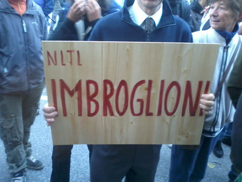 Val di Susa, ora lo sviluppo. 22 ottobre 2012: oltre la rotonda limitrofa all’uscita autostradale di Avigliana Est, il comitato di accoglienza del Partito Democratico è costituito da centinaia di agenti in assetto antisommossa, come in una film di guerra. All’interno dell’hotel Ninfa si dovrebbe svolgere il convegno sul futuro economico della valle, che evidentemente, secondo gli organizzatori, passa attraverso la kermesse di più di trenta relatori in poche ore, una sfida alla capacità di concentrazione e uno schiaffo alla possibilità di confronto. A chi attendeva di poter assistere, ribattere o contestare sono stati utili i manganelli e gli scudi per aver conferma dell’originale interpretazione che il PD dà al concetto di partecipazione e coinvolgimento della popolazione. Al tavolo dei relatori, per altro, nessun imprenditore: prevale l’idea che il lavoro si crei artificialmente, nelle bottegucce di partito. Le stesse bottegucce che condannano quest’Italia alla disperazione, a scontare il peso di un debito formato in decenni di cattiva amministrazione e altrettanto pessima opposizione parlamentare, a subire l’onta di una classe politica vergognosa che osa ancora proporre le medesime ricette senza nemmeno la dignità di sottoporsi al confronto civile e frontale.