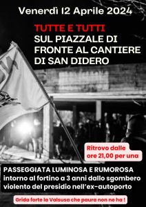 Facciamoci sentire e vedere con una passeggiata luminosa e rumorosa intorno al cantiere per gridare NO AUTOPORTO, NO TAV e NO MAFIE!!