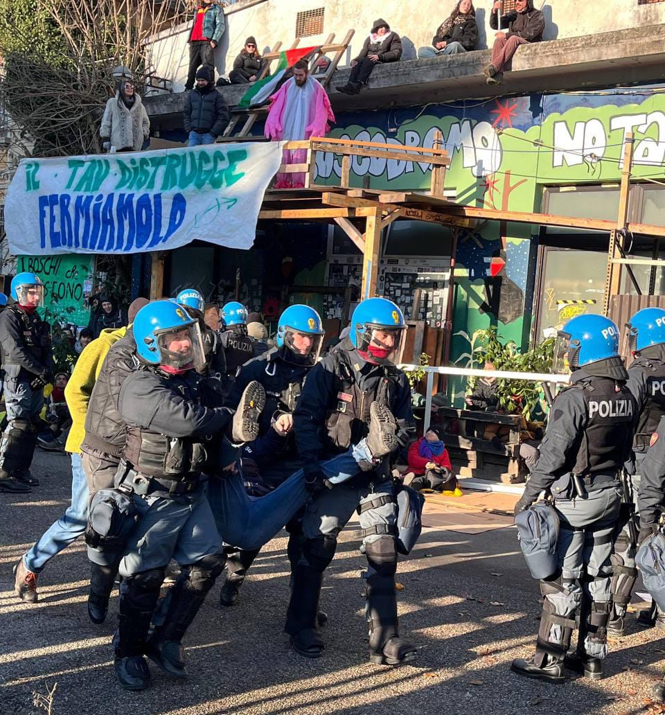 Da questo lunedì mattina la polizia ha iniziato ad abbattere con le ruspe il presidio No Tav e sgomberare attivisti e attiviste, in presidio permanente da venerdì scorso per difendere il territorio, i boschi ed il quartiere dall’arrivo di cantieri e cemento. Decine di persone hanno resistito passivamente – seduti davanti all’edificio – alla devastazione della zona, portati via dalla polizia.