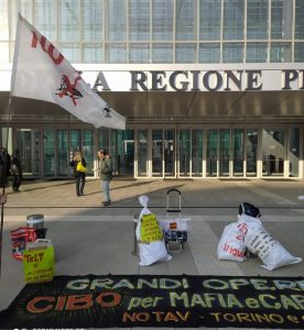 Terza Valutazione d’impatto sulla Salute (Vis) della galleria esplorativa per la Torino-Lione tenutosi oggi in Regione ma il popolo No Tav denuncia con un flash mob di fronte al grattacielo della Regione la situazione critica presente in Val Susa. Regione, Arpa e Telt mentono minimizzando o ignorando del tutto le polveri sottili, l’amianto, l’uranio, la presenza crescente di PFOA e PFAS, il disboscamento, la cementificazione, l’impatto del rumore.