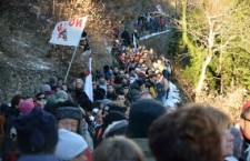 Il 25 febbraio è la valle a scendere in piazza, dopo gli arresti, in difesa del territorio sostenuta dall’Italia intera. 75000 persone marciano da Bussoleno a Susa contro la Torino Lione, è forse una delle marce popolari più partecipate della storia di questo movimento e la temperatura politica sale ancora, sarà un grande anno anche questo. A nenache un mese dagli arresti sono i famigliari degli arrestati e i sindaci della valle ad aprire il corteo, altro bel segnale di unità. (la cronaca della giornata da notav.info).