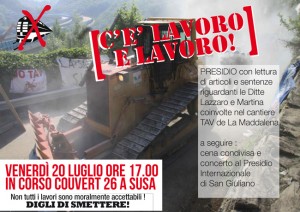 presidio con lettura di articoli e sentenze riguardanti le Ditte Lazzaro e Martina coinvolte nel cantiere TAV de La Maddalena