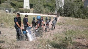 ore 13.27 – Una trentina di manifestanti che si trova all’interno della recinzione in costruzione, sono stati bloccati ed ora sono circondati e controllati a vista dalle forze dell’ordine, alcuni attivisti sono stati presi di peso ed allontanati. E’ più che mai indispensabile la presenza di tutti/e alla baita Clarea. Chi riesce salga immediatamente.