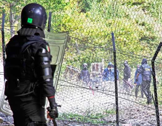 ore 08.40 – Le forze del disordine e gli operai del non cantiere stanno tentando di allargare la recinzione in prossimità delle vasche appena sotto l’area archeologica, sotto e oltre il viadotto lato Clarea. E’ importante salire a Chiomonte e dare supporto a chi resiste da stamani presto. le forze del disordina hanno già lanciato i lacrimogeni e stanno tentando di respingere ed allontanare i resistenti. Per tutti/e l’appuntamento è previsto per le ore 09.30 al campo sportivo di Giaglione per dare supporto!!!