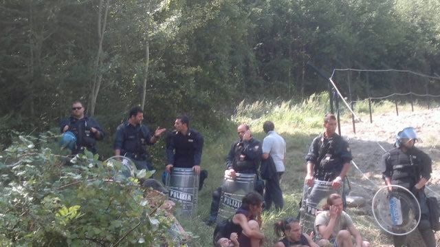 ore 10.45 – In Clarea é in corso una piccola assemblea per fare il punto. Circa una mezzoretta fa é stata fermata una ragazza che cercava di salire su una ruspa. Pare sia ancora in stato di fermo.