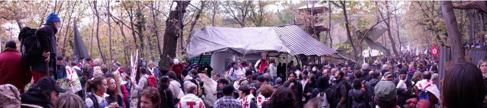Nonostante tutto alle 11.30 un enorme corteo (15-20 mila persone) ha iniziato a muoversi dal campo sportivo di Giaglione; dopo circa un Km, è arrivato davanti alla rete che delimita la zona rossa e in un amen le tronchesine sono entrate in azione e la rete si sono aperte. A quel punto, per aggirare i posti di blocco e i jersy, il corteo si è diviso in tre tronconi che hanno praticato difficili e faticosi sentieri montani, ma nessuno ha mollato e, più importante ancora, nessuno è tornato indietro. La zona rossa è ormai invasa da migliaia di persone, e dopo circa un’ ora le teste dei tre cortei si sono riincontrate, dopo aver guadato il torrente Clarea, alla baita-presidio. Tutti i posti di blocco sono stati aggirati compreso l’ultimo, posizionato sul ponte del Clarea formato da un centinaio di carabinieri agghindati da rambo.