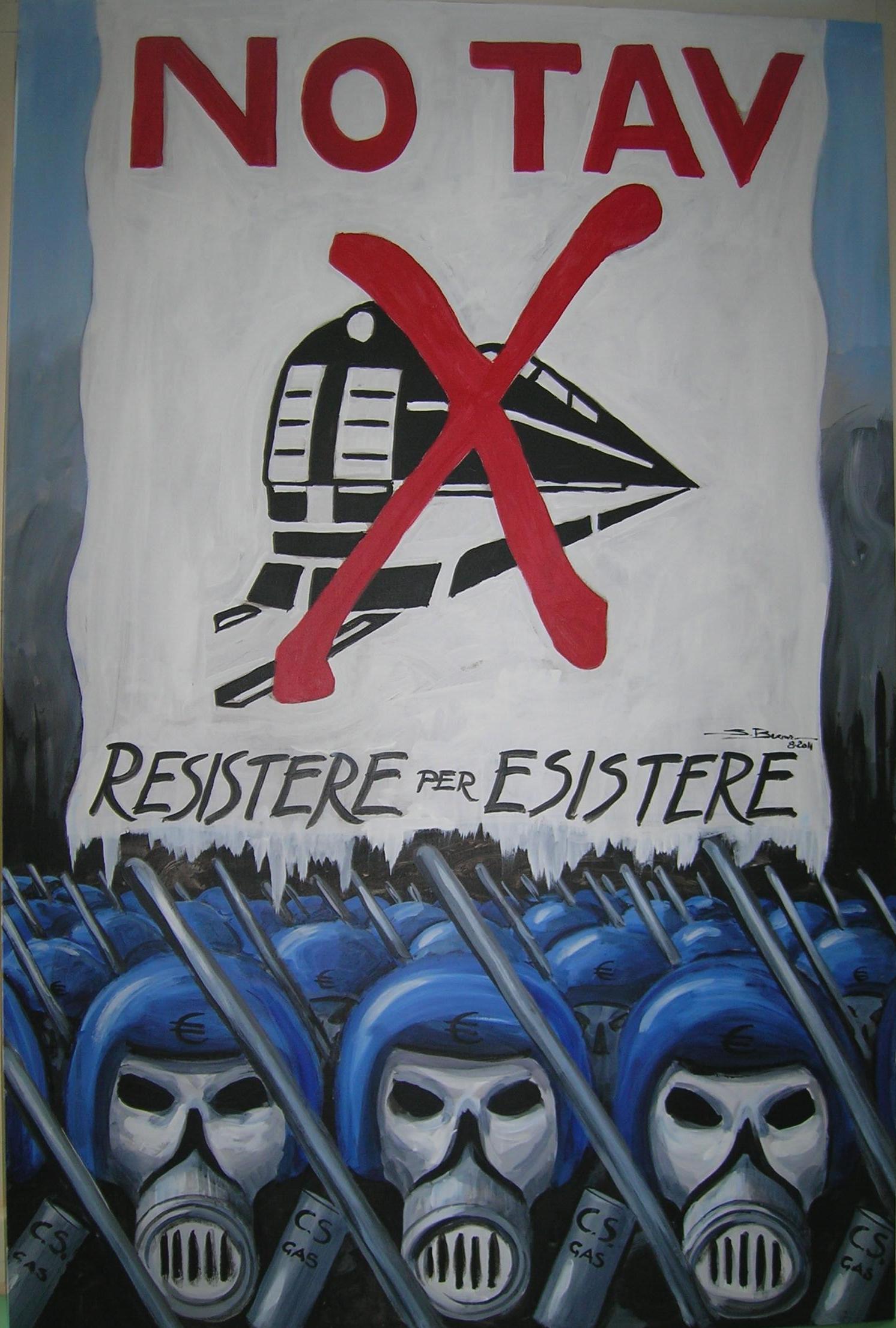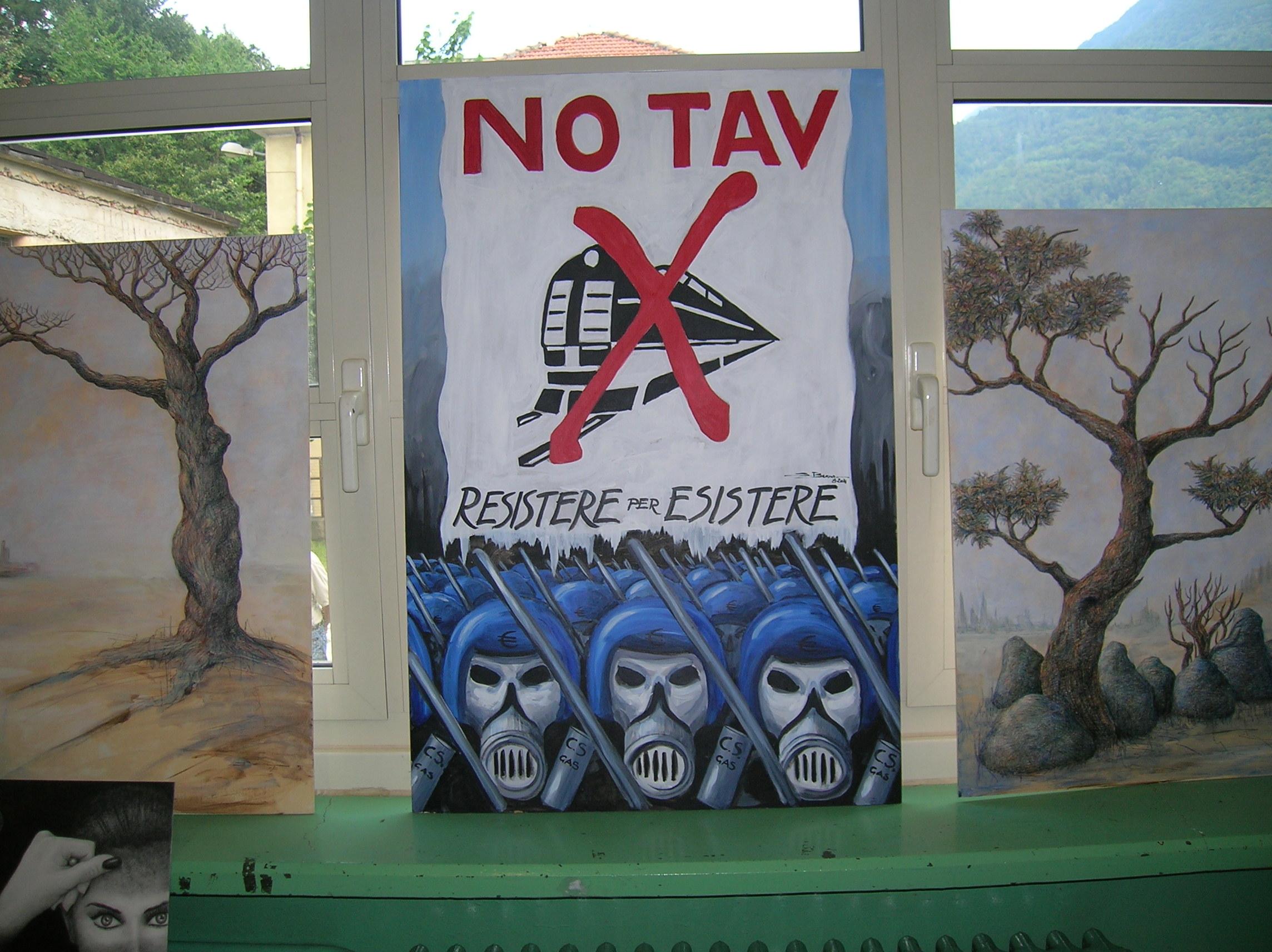 Pubblichiamo un’opera di Sergio, alpino e pittore No Tav che avendo saputo che avrebbe presenziato un consigliere provinciale all’inaugurazione della mostra “Perosa Estrosa 2011” in occasione della festa di Perosa Argentina ha fatto velocemente un quadro NoTav per rimarcare che siamo ovunque, anche in Val Chisone. Ecco le foto.