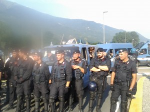 Come era stato annunciato la settimana di lotta no tav è iniziata e già subito arrivano i primi frutti. Da ieri sera sono stati intercettati numerosi convogli sospetti fino ad arrivare ad oggi pomeriggio martedì 6 agosto quando a Chianocco sono spuntati due trasporti eccezzionali seguiti da una autobotte carica di cemento in polvere diretta all’impianto di betonaggio del cantiere. Immediata la risposta della vedette no tav e dei presidianti che hanno deciso di bloccare la strade e fermare i convogli. Dopo poco sono intervenuti così centinaia di poliziotti e carabinieri in assetto anti sommossa che hanno caricato i blocchi e isolato nell’area del presidio una ventina di no tav. Il tam tam in rete è così iniziato e centinaia di no tav hanno immediatamente raggiunto il presidio. La polizia ha poi così deciso di portare i fermati tra i quali anche Nicoletta Dosio proprietaria della Credenza in questura per visionare i filamti dei blocchi e decidere se trasformare in arresti i fermi o meno. Immediata la risposta del movimento che ha resistito ponendosi davanti ai mezzi della polizia e cercando di impedire che i no tav fossero portati via. Con spintoni e manganellate i reparti hanno così fatto largo alle camionette che a sirene spiegate sono sfrecciate via attraverso l’autostrada. Le mobilitazioni sono dunque in rilancio continuo con un primo appuntamento per questa sera alle ore 21 sempre al presidio di Chianocco, all’uscita della autostrada a32.