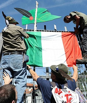 Alle tre del pomeriggio ci sono già tre o quattrocento persone in attesa degli alpini, cioè quelli che hanno deciso di contestare gli alpini veri, i militari che stanno presidiando il cantiere insieme alle forze dell’ordine. Anche se l’Ana li aveva diffidati dal portare il cappello con la penna nera, perché loro non devono fare politica, in molti ‘hanno indossato ugualmente e con orgoglio. “Gli alpini veri siamo noi, non quei mercenari là dentro. Il cappello me lo sono sudato durante la naja, è un simbolo di pace, non me lo tolgo certo adesso”, racconta un ex artigliere arrivato da Condove. E come lui ce ne sono proprio tanti, di tutte le età, la maggior parte tra i quaranta e i cinquanta, però ci sono pure i più anziani e le donne, anche loro con la penna nera. Verso le cinque si mettono tutti in marcia e salgono al cantiere della Maddalena, dove canteranno e protesteranno. Dietro di loro, una lunga coda di No Tav senza cappello, ma con più di una ragione per protestare.