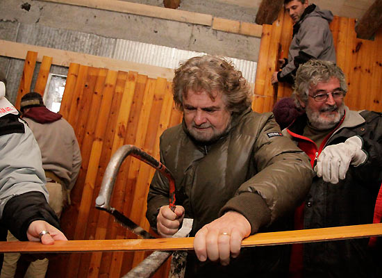 (ANSA) – CHIOMONTE (TORINO), 5 DIC – Beppe Grillo, leader del movimento Cinque Stelle, e’ entrato oggi nella baita costruita dal movimento No Tav, violando i sigilli posti dalla magistratura. I sigilli, in realta’, erano gia’ stati portati via dal vento.
