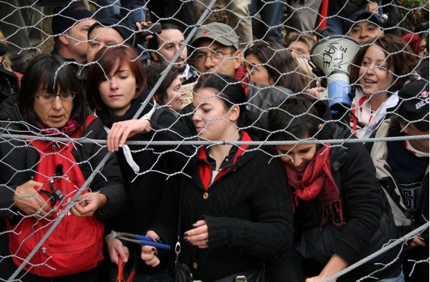 h 12.48_ le reti vanno giù!! il corteo entra in massa nella zona rossa! #notav #valdisusa #diamociuntaglio