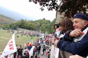 h 11.05_ Migliaia di persone cercano di raggiungere a piedi Giaglione.. Le forze dell’ordine continuano i posti di blocco.. Al campo sportivo di Giaglione mai cosi’ tanta gente!