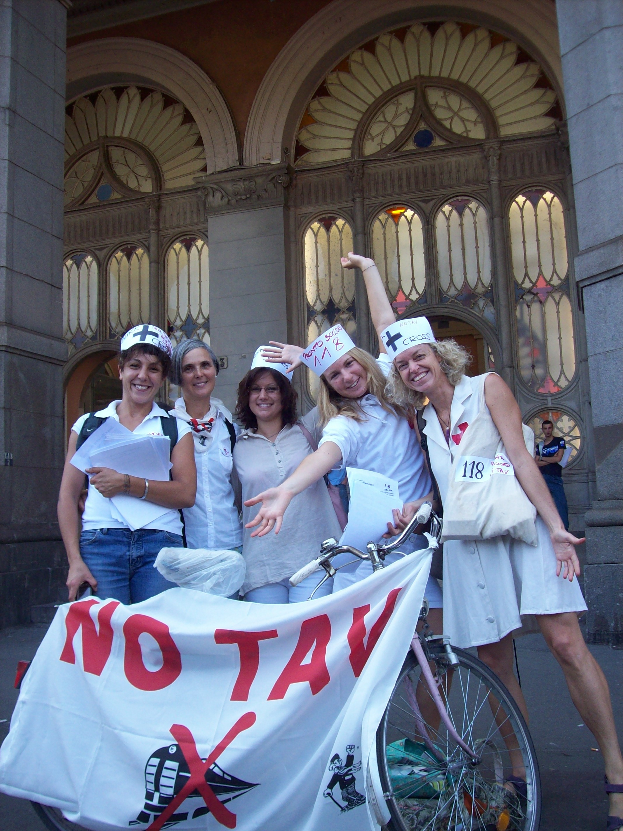 L’azione è avvenuta davanti all’ingresso di Porta Nuova dalle 11.30 alle 13, ha avuto un buon successo, ha incuriosito e suscitato simpatia. Il travestimento è stato un buon pretesto per parlare della vera identità delle due arrestate (definite dal La stampa “anarchica l’una e “autonoma” l’altra) e per parlare più in generale alla questione No Tav e fare informazione. Più che un volantinaggio è stata una chiacchierata informativa.