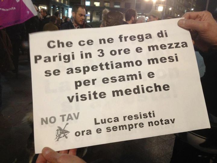 : Il primo pensiero va a Luca Abbà in questo momento drammatico, e che ne esca al più presto. Il 2º va alla Tav: un’opera insensata. #notav