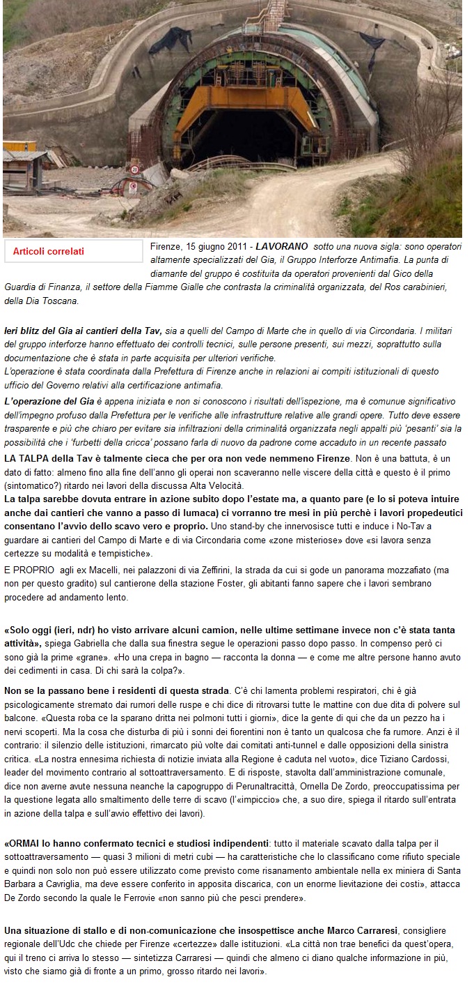 FIRENZE, FINANZA NEI CANTIERI TAV LA TALPA RESTA IN LETARGO