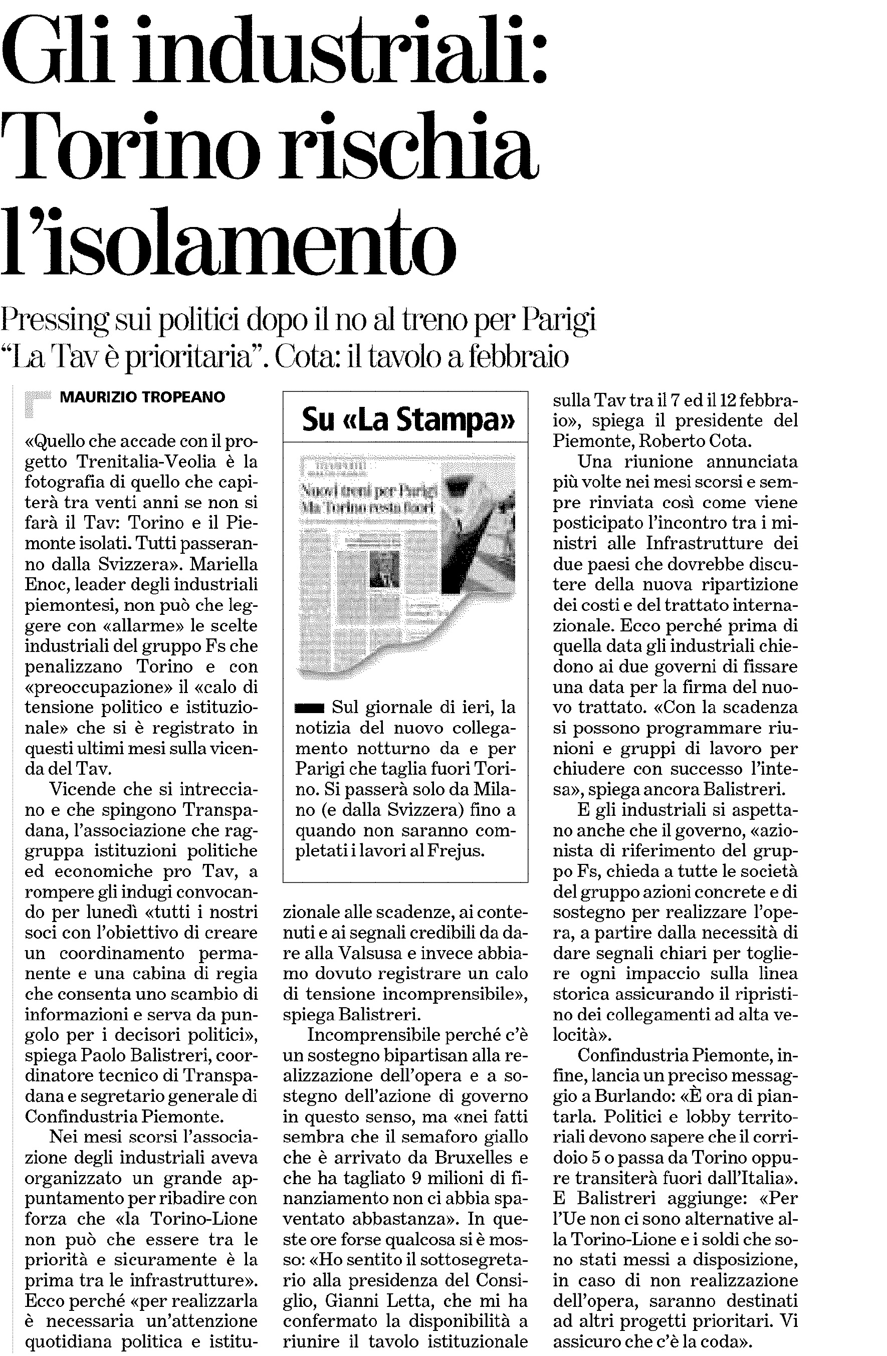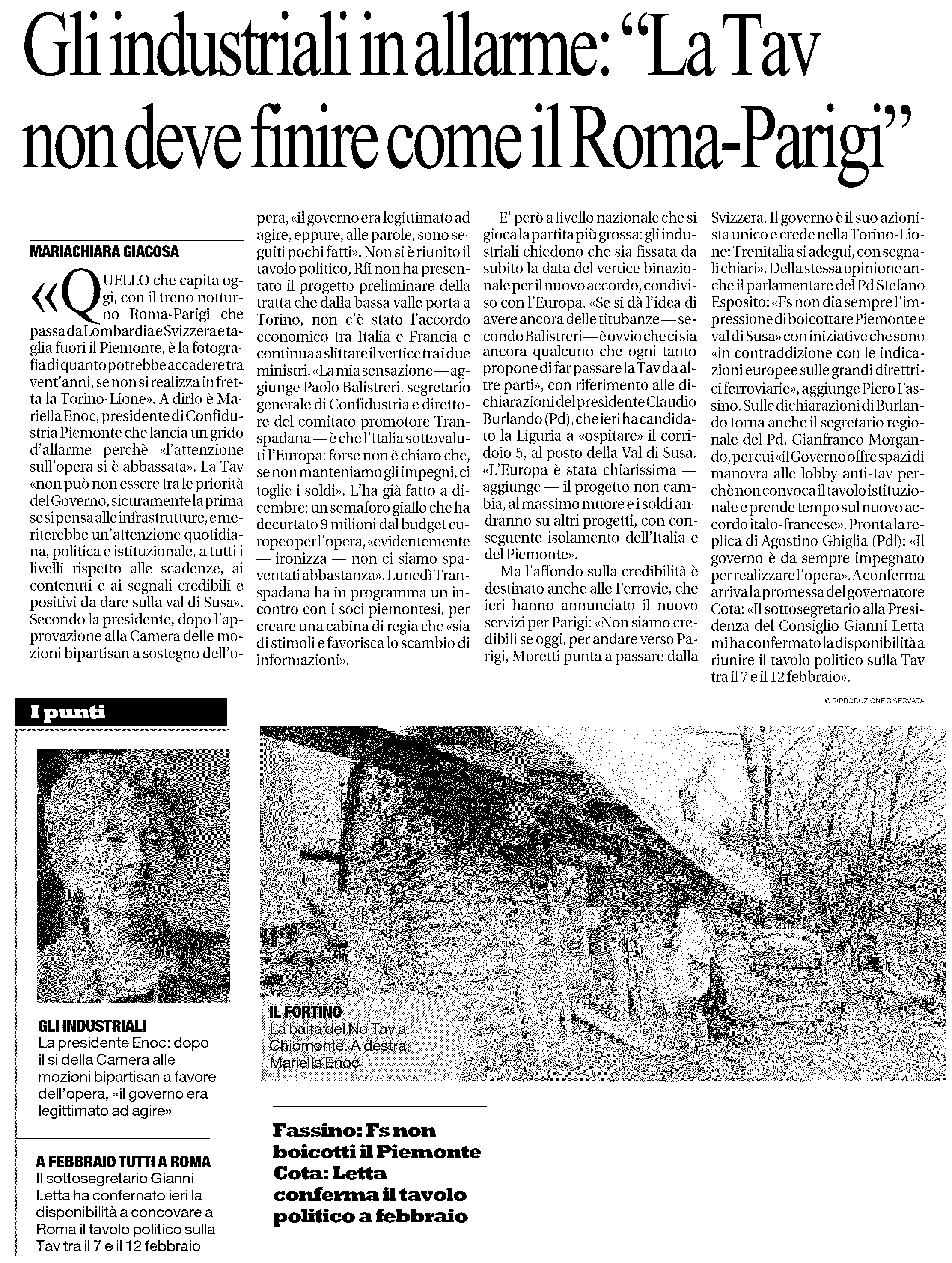 Rassegna stampa del 21 gennaio 2011 da Repubblica e LaStampa