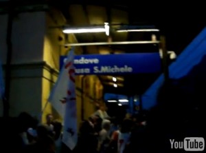 Questa sera, giovedì 4 agosto, il movimento NO TAV si è dato appuntamento a Condove per un’iniziativa volta a “disturbare” i signori del Tav e l’apparato poliziesco-militare messo in campo dando così un’ immediata risposta alla notizia odierna del passaggio di gestione dell’appalto per le recinzioni del piazzale della Maddalena dalla ormai fallita Italcoge alla ditta Martina. L’appuntamento serale dalla piazza del comune, si è immediatamente spostato alla stazione di Condove dove, con il suo metodo tipico, il movimento no tav ha bloccato il passaggio del Tgv diretto a Torino. Circa 400 persone sono al momento sulla banchina con il treno fermo all’ingresso della stazione da ormai più di un’ora.