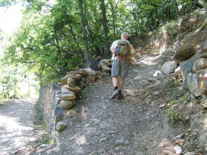 Il sentiero, purtroppo meno agevole e quindi utilizzabile soprattutto a piedi, oggi ripulito e sistemato, si imbocca svoltando a destra lungo la strada campestre che da Giaglione va verso Chiomonte e la Ramat: il percorso è chiaramente segnato dalle frecce bianche e gialle e dall’omino giallo e il primo tratto soprattutto è decisamente in salita, tra boschi e vigne di un tempo.