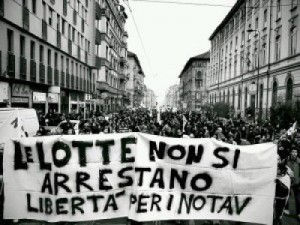 Sicuramente il corteo di ieri è stato capace ancora una volta di rompere la retorica che vorrebbe il movimento No Tav come un movimento localista e ghettizzato, incapace di uscire dalla valle. Il No Tav è patrimonio e bene comune di tutte le lotte sui territori e non che si stanno sviluppando e che vedono in questa esperienza non solo l’esempio del fatto che fermare speculazioni e malaffare di impresari e politicanti é possibile, ma anche il modello di come un nuovo modello di sviluppo che vada oltre la resistenza e si costruisca e proliferi dentro la lotta. Proprio per questo il corteo di ieri era molto composito, e teneva al suo interno tanto comitati di migranti o per il diritto all’abitare, quanto l’esperienza del No expo, un buon numero di studenti medi e universitari, giovani e meno giovani.
