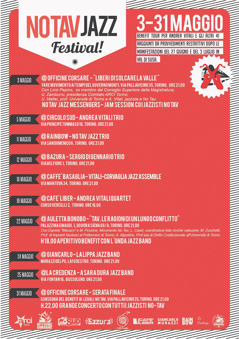 ciao, vi allego la locandina del no tav jazz tour organizzato dal sottoscritto e dall’Arci per raccogliere fondi per gli attivisti in carcere