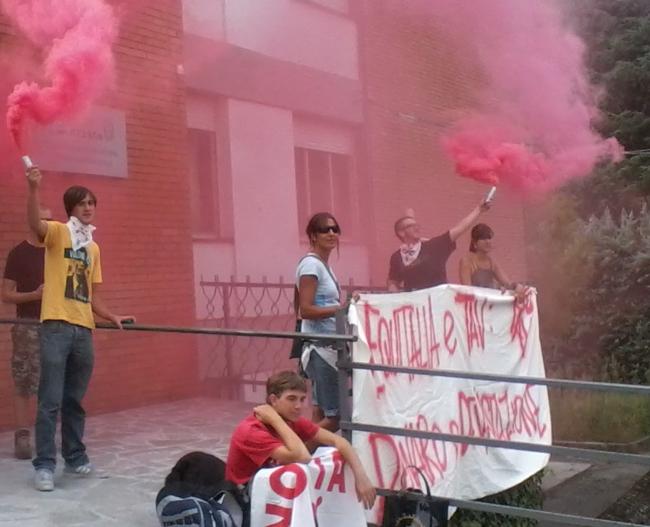 Oggi 28 agosto 2012 il movimento no tav ha occupato la sede di Equitalia di Susa. Di seguito alcune testimonianze video e il testo del volantino distribuito durante l’azione che ne spiega il significato e le motivazioni. Dopo il blocco il gruppo di no tav si è poi diretto al vicino mercato della cittadino dove è stato accolto dagli applausi dei presenti. Una pressione e una attività, quella di Equitalia ormai insostenibile.