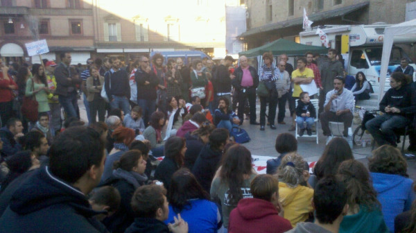 E’ proseguita, dopo l’assemblea di ieri su debito,crisi e prospettive di risposte (e lotte) globali, l’acampada in piazza Maggiore a Bologna, sviluppatasi ieri al termine del corteo degli studenti medi della città. Oggi, dopo una notte passata nel cuore della città, si è ripreso sin dalla mattina ad animare il centro cittadino sottolineando soprattutto quello che sarebbe successo da lì a poco, precisamente alle 15 quando il movimento NoTav è passato a raccontarsi, all’interno della seconda tappa (dopo quella torinese di ieri) del No Tav Tour. Dopo l’incontro, intanto, #occupybologna continua. Alle 21.30 assemblea pubblica aperta a tutta la città, associazioni, movimenti e singoli disposti a contaminarsi con gli studenti in occupazione..