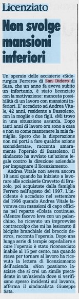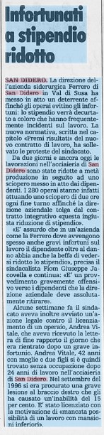 Se si scrive San Didero sul motore di ricerca dell’archivio storico di La Stampa come abbiamo fatto noi, si è impressionati da quali siano le principali tematiche degli articoli trovati: oltre a quelli che abbiamo nominato nella scorsa puntata rispetto all’autoporto fantasma, oltre ad alcuni e sparuti trafiletti di cronaca minuta, la maggior parte delle notizie ruotano intorno all’acciaieria. E non sono buone notizie: si parla di incidenti sul lavoro, fumi e polveri preoccupanti, incendi inquietanti, licenziamenti.