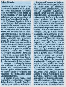 Il 24 febbraio nel frattempo la Provincia di Torino annuncia una diffida nei confronti della Beltrame per l’adeguamento degli impianti e l’eliminazione delle emissioni. Ma è datato 6 luglio 2005, a più di un anno di distanza, questo articolo di La Stampa, che riportiamo in calce, dove si dice che secondo i rilevamenti le emissioni di diossina e Pcb non si sarebbero affatto fermate rispetto all’anno precedente ma anzi sarebbero aumentate rispettivamente del 70% per la prima e del 424% per il secondo: secondo Claudio Cancelli, docente del Politecnico, la Beltrame avrebbe incrementato la produzione. L’articolo segnala un altro dato importante e cioè il fatto che nel Comune di San Didero è stato riscontrato una mortalità superiore al livello nazionale per quanto riguarda i tumori allo stomaco e alla laringe.