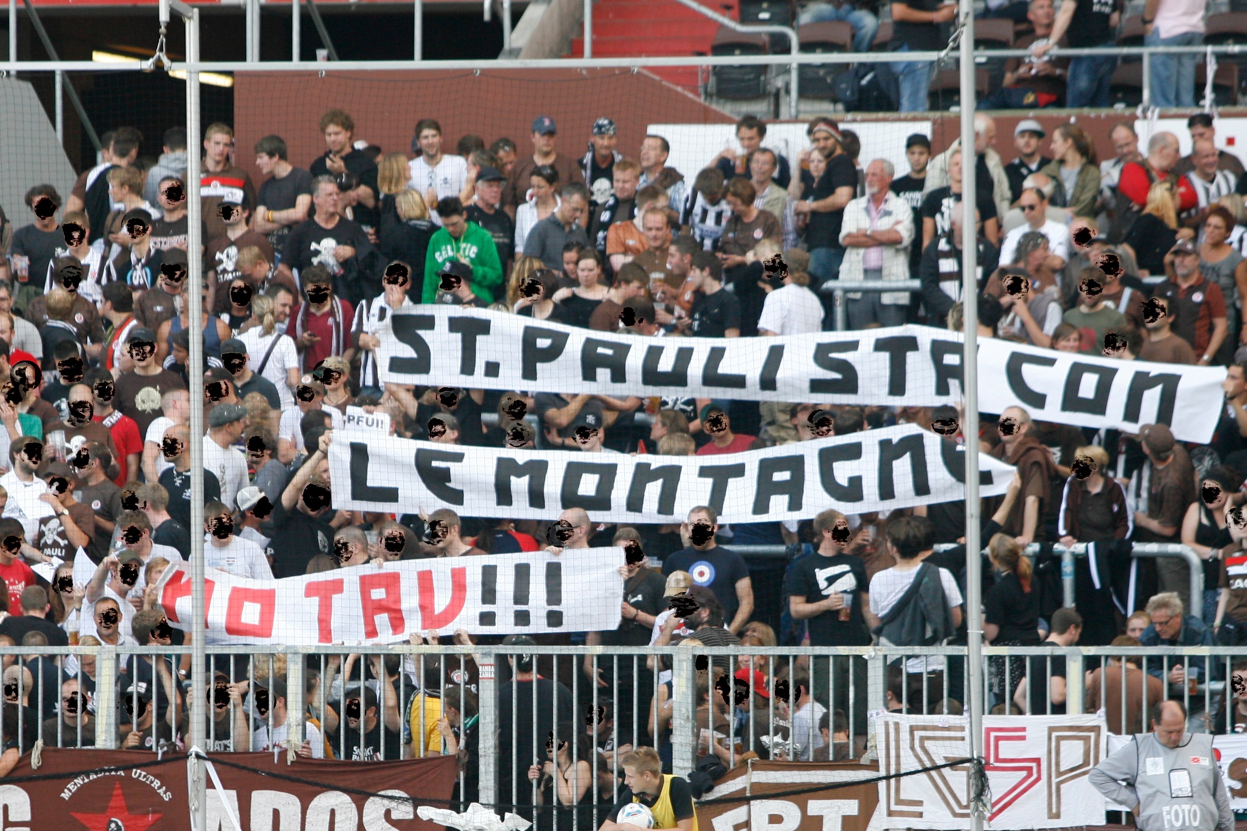 Avevamo pubblicato qui la solidarietà espressa dai supporter del FC Sankt Pauli, squadra di calcio tedesca, di Amburgo famosa per il suo impegno, e dei suoi tifosi contro il razzismo, in tutto il mondo. Avevano promesso che alla prima partita possibile avrebbero esposto uno striscione in solidarietà alla nostra lotta. ECCOLO!