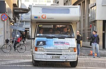 Ha fatto tappa anche ad Arezzo (oggi, venerdì 28 ottobre) il camper che dalla Val di Susa sta percorrendo tutta la penisola per portare le ragioni del movimento No Tav a conoscenza di tutti i cittadini italiani. Mimmo Bruno, Ezio Bertok, Gianna De Masi, Tommaso Sarzotti e Lallo De Giosa non sono violenti black bloc dal volto mascherato che inneggiano alla violenza, ma persone per bene, uomini e donne che lavorano, mandano i figli a scuola, pagano le tasse e semplicemente esprimono con fermezza il proprio dissenso nei confronti di un’opera – quella dell’Alta Velocità così come è stata concepita da questo governo – che non porterà alcun beneficio.