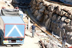 Ma la “goccia che ha fatto traboccare il muro” è stata la deviazione di una bialera sui nostri terreni, vicino alla baita in latta, che già scorreva in cantiere canalizzata in un tubo. Grazie all’aiuto dei No Tav, l’acqua ha trovato la sua strada attraverso il muro di contenimento davanti al tunnel, causando l’ennesima perplessità ai garanti della sicurezza del cantiere che, vedendo dell’acqua, hanno pensato bene di mandare l’idrante in supporto alla nuova attrazione paesaggistica: la CascaTAV.