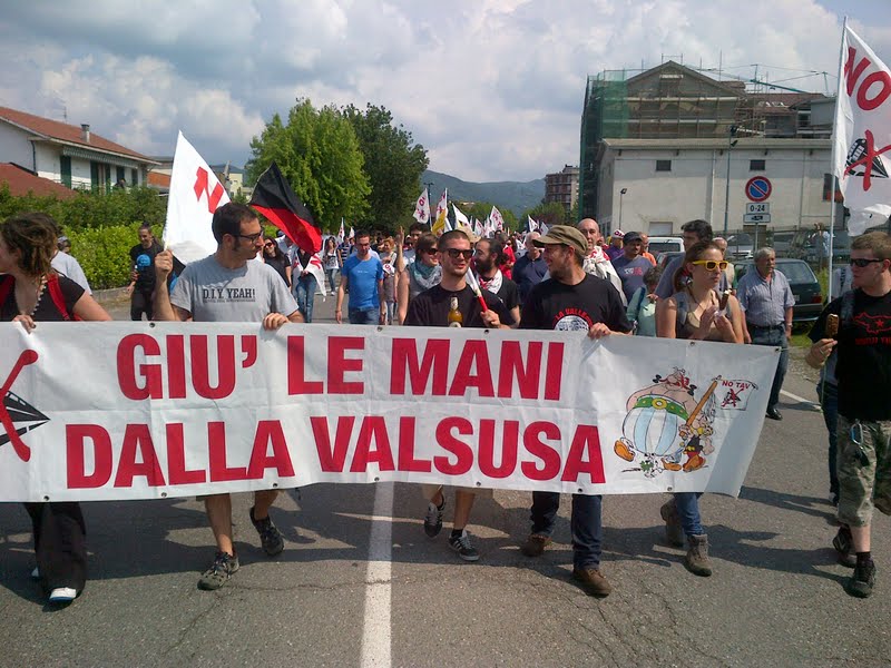 Nutrita la delegazione della Valsusa che viene applaudita, così come numerose sono le bandiere appese alle finestre e in molti negozi, insieme al manifesto del corteo. Applauditssimo l’intervento del sindaco (espressione di una lista civica di ispirazione centro destra) che ha sottolineato l’importanza della difesa del territorio minacciato dall’opera, per inciso l’unico sindaco notav della valle scrivia, a rimarcare la miopia dei sindaci del pd, schierati con la lobby dell’alta velocità contro i loro stessi cittadini.